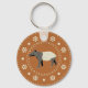 This keychain is ready to be personalised with a set of initials in cream coloured lettering and features my realistic style illustration of a Malayan or Asian tapir in charcoal grey and cream against a cinnamon orange coloured background. The reverse side has a coordinating tapir graphic surrounded by cream coloured geometric accents.