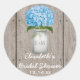 Monogrammed Mason Jar Blue Hydrangea Bridal Shower Classic Round Sticker