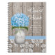 Pretty rustic style monogrammed mason jar binder with a blue hydrangea flower and a wooden fence and antique damask pattern lace background and stitched blue ribbon. This wedding or bridal shower or couples shower guest book and words of advice book can be personalised with the initials and monogram of the bride and groom on the mason jar and customised with the names of the happy couple. Perfect for a country, farmhouse, garden party or barnyard style wedding or shower. Designed by Chrissy H. Studios, LLC. All rights reserved.