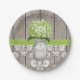 Monogrammed Mason Jar Green Hydrangea Wedding Paper Plate