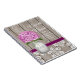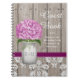 Pretty rustic style monogrammed mason jar binder with a reddish purple hydrangea flower and a wooden fence and antique damask pattern lace background and stitched plum hued ribbon. This wedding or bridal shower or couples shower guest book and words of advice book can be personalised with the initials and monogram of the bride and groom on the mason jar and customised with the names of the happy couple. Perfect for a country, farmhouse, garden party or barnyard style wedding or shower. Designed by Chrissy H. Studios, LLC. All rights reserved.
