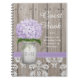 Pretty rustic style monogrammed mason jar binder with a purple hydrangea flower and a wooden fence and antique damask pattern lace background and stitched lavender ribbon. This wedding or bridal shower or couples shower guest book and words of advice book can be personalised with the initials and monogram of the bride and groom on the mason jar and customised with the names of the happy couple. Perfect for a country, farmhouse, garden party or barnyard style wedding or shower. Designed by Chrissy H. Studios, LLC. All rights reserved.