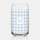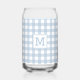 Monogrammed Minimalist Blue Gingham Plaid Pattern Can Glass