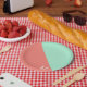 Monogrammed Mint and Coral Colour Block Paper Plate