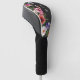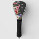 Monogrammed Pretty Modern Floral Golf Head Cover, designed with a pretty watercolor floral, over a deep grey background with space for initials or a short name, making it a unique gift for a golfer.