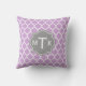 Monogrammed Modern Grey and Lilac Lattice Pattern Cushion
