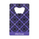 This credit card sized bottle opener has the Moody Blue kaleidoscope square in shades of blue. Musical notes form a circle in the centre of the design. Change the current name, "Melissa" to your own to personalise it.