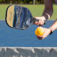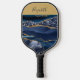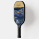 Monogrammed Name Blue Gold Glitter Glam Trendy Pickleball Paddle