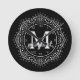 Monogrammed Name Boho Mandala Black Silver Round Clock
