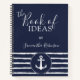 Create a personalised navy blue and white nautical notebook for ideas and plans with the stylish typography, anchor and stripes design. Type your name by using the template to create a unique present for your loved ones. Stripes have a hand-drawn look.
