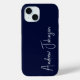 This monogrammed navy blue iphone 15 case is trendy yet and classic. It features your name in a fabulous modern script font in white. It's simple and minimal and professional.