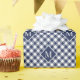 Diagonal navy blue and white buffalo check pattern features a repeating monogram in a dark blue diamond with a white border on each side. Add your initial in the sidebar.