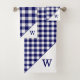 Monogrammed Navy Blue White Buffalo Plaid Pattern Bath Towel Set