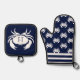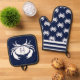 Monogrammed Navy Blue White Crab Nautical Oven Mitt & Pot Holder Set