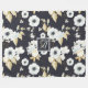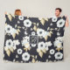 Monogrammed Navy Blue White Floral Decor Anemone Fleece Blanket