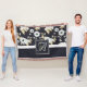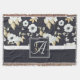 Monogrammed Navy Blue White Floral Decor Anemone Throw Blanket