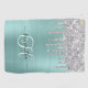 Monogrammed Pale Turquoise Silver Dripping Glitter Golf Towel