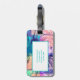 A stylish luggage tag features your monogram initial on a collage of turquoise, blue, purple, orange and pink tropical palm trees on the front and your address information printed on the back OR choose the style you can insert your business card on the back. Create for yourself or give as a gift. MATCHING drawstring bag and more items in our travel collection.