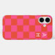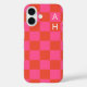 Monogrammed Pink and Orange Chequerboard Pattern Case-Mate iPhone Case