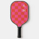 Monogrammed Pink and Orange Chequerboard Pattern Pickleball Paddle