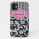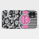 Monogrammed Pink, Black, White Striped Damask Case-Mate iPhone Case