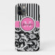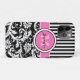 Monogrammed Pink, Black, White Striped Damask Case-Mate iPhone Case