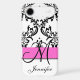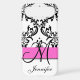 Monogrammed Pink Black White Swirls Damask Case-Mate iPhone Case