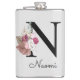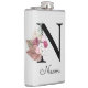 Monogrammed Pink Boho Floral Initial N Hip Flask