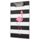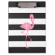 Monogrammed Pink Flamingo + Black + White Stripes Clipboard
