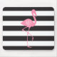 Monogrammed Pink Flamingo + Black + White Stripes Mouse Pad