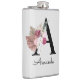 Monogrammed pink Boho initial flask, perfect gift for a bachelorette party or other fun girly celebration. Customised with monogrammed the letter A and a name.