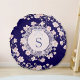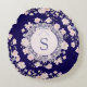Monogrammed Pink Flowers and Lace Floral Round Cushion