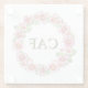 Pink and green floral wreath monogrammed coaster. Add your initials or a short name. Makes a great gift for anyone.