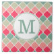 Monogrammed Pink Green Moroccan Lattice Pattern Ceramic Tile