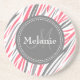 Monogrammed Pink & Grey Zebra Pattern Coaster