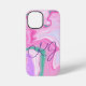 Monogrammed Marble fluid art in pink, purple and mint green fluid art phone case.