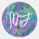 Monogrammed Purple and Blue Pour Painting Classic Round Sticker