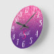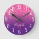 Monogrammed Purple and Hot Pink Glitter Ombre Round Clock
