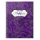 This personalised purple, black, and white ornate floral scrolled pattern notebook has template boxes for you to add your name, monogram or other text to. If you need help customising this item, please email niteowlstudio@gmail.com for assistance.