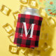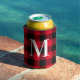 Monogrammed Red and Black Lumberjack Buffalo Plaid Can Cooler