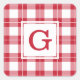 Monogrammed Red and White Plaid Pattern Square Sticker
