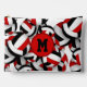 This volleyball themed zipper pouch features a random pattern of varied size red, black & white volleyballs turned every which way on a white background - customise with the volleyball player's monogram - by katz_d_zynes