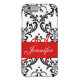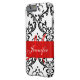 Monogrammed Red Black White Swirls Damask Case-Mate iPhone Case