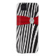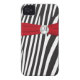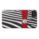 Monogrammed modern red, black, and white zebra stripes Case-Mate Barely There™ iPhone 4 Case with FAUX ribbon and jewelled brooch.
