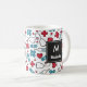 Monogrammed Red Blue Nurse Pattern Coffee Mug