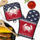 Monogrammed Red White Navy Blue Crab Nautical Oven Mitts