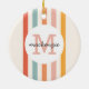 Monogrammed Retro Colourful Stripes Personalised Ceramic Ornament