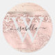 Monogrammed Rose Gold Brush Strokes Glitter Script Classic Round Sticker