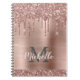 Modern, girly rose gold glitter drips name and monogrammed notebook. This design features blush pink rose gold glitter sparkle drips on pink brushed metal background with custom personalized monogram initial and first name text template. Perfect feminine gift. Please note, this design is printed photo effect. If you need help or matching items, please contact to me.