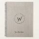 A beautiful monogram design using your name and initial in a classy circle shape. A beige faux linen texture in the background with black accents creates a unique styles. Customise the monogram and text and make it your own. Ideal office and school stationery supplies. Other linen colours offered in this design.
